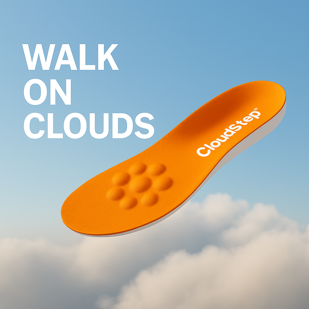 Walk softer and lighter with Cloudstep™ — pain reduced, posture improved, energy restored.